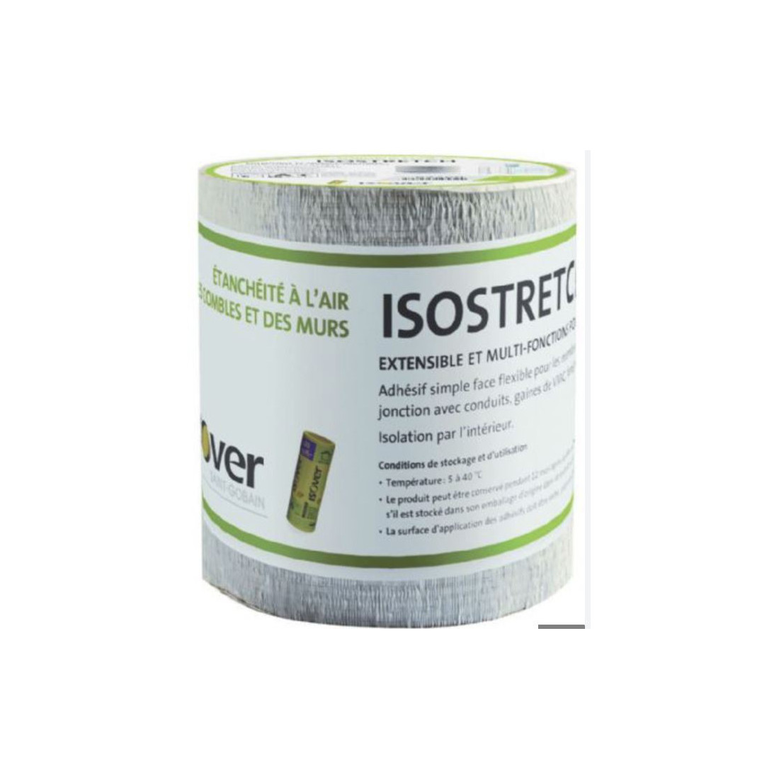 Adhésif de 15 cm de large, composé d’un ruban et d’un film support étirable, avec film protecteur.
