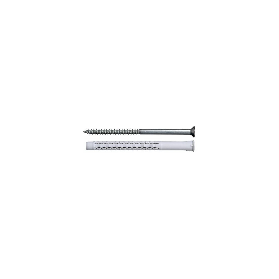 Cheville longue avec tire-fond tête hexagonale. Idéale pour les matériaux creux. Cheville Ø10 : Tire-fond Ø7. Tire-fond finition zinguée blanche. Fabrication Française. Dans les matériaux creux, expansions sur plusieurs alvéoles du support. Cheville 100% nylon polyamide 6. Ailettes anti-rotation. Facile et rapide : Pose au travers de la pièce à fixer. Equerres de fixation, bardage, pattes de radiateur, ...