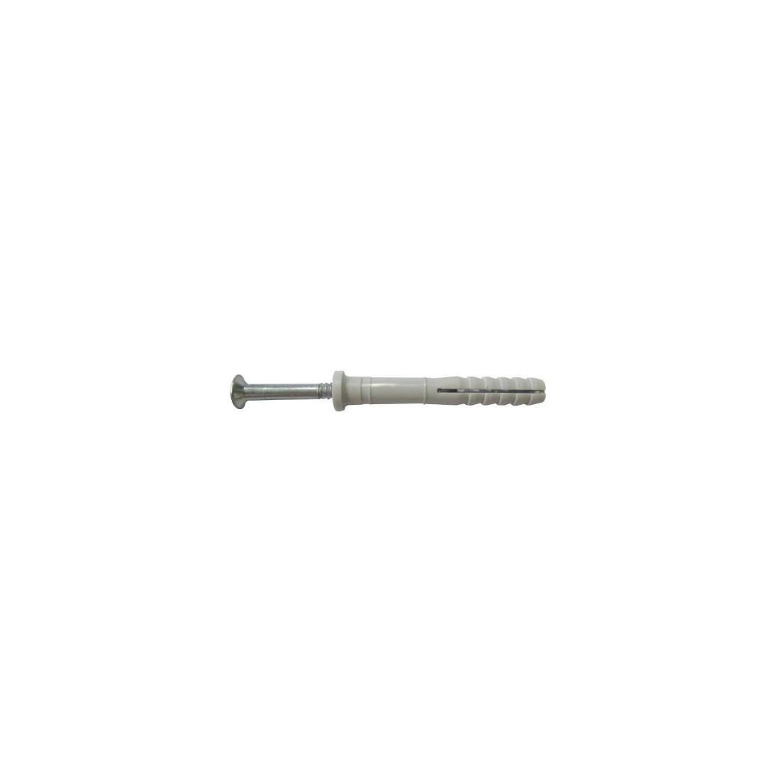Cheville à frapper à collerette plate. Expansion par frappe ou par vissage. Cheville 100% nylon. Vis en acier 5,8. Facile et rapide : expansion par frappe au travers de la pièce à fixer. Vis en acier 5,8 : pas de déformation à la frappe. Grand diamètre de collerette : meilleur placage. Collerette plate. Livrées pré-montées. Structures métalliques / en bois, rails de plaques de plâtre, goulottes, tasseaux, ...